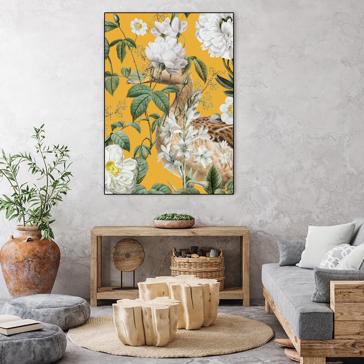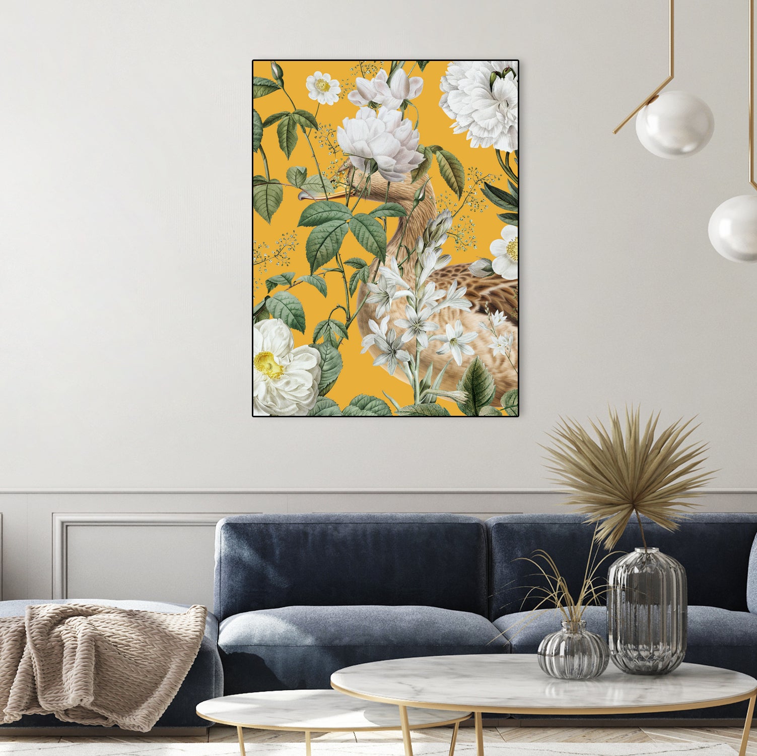Elegant Bird Flowers - Canvas framed / 18 x 24 inches is backordered and will ship as soon as it is back in stock.
