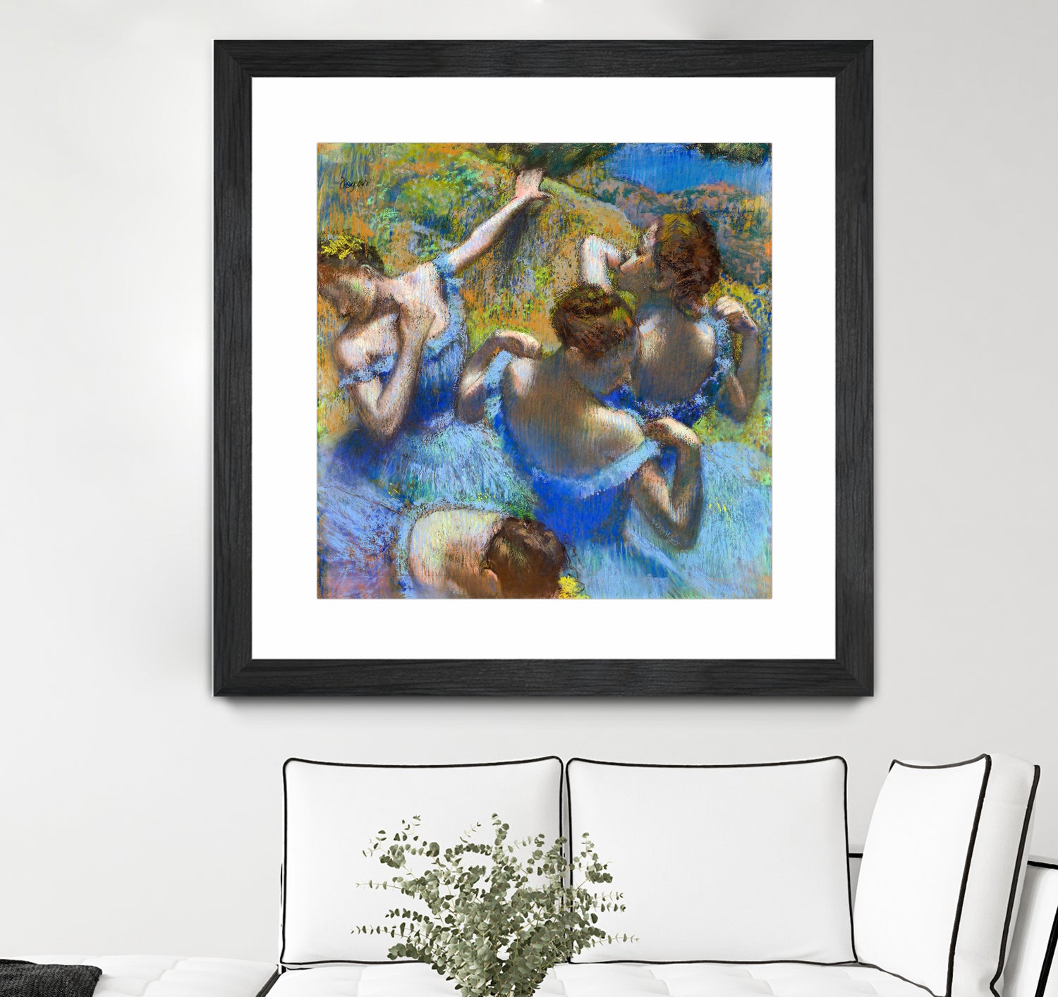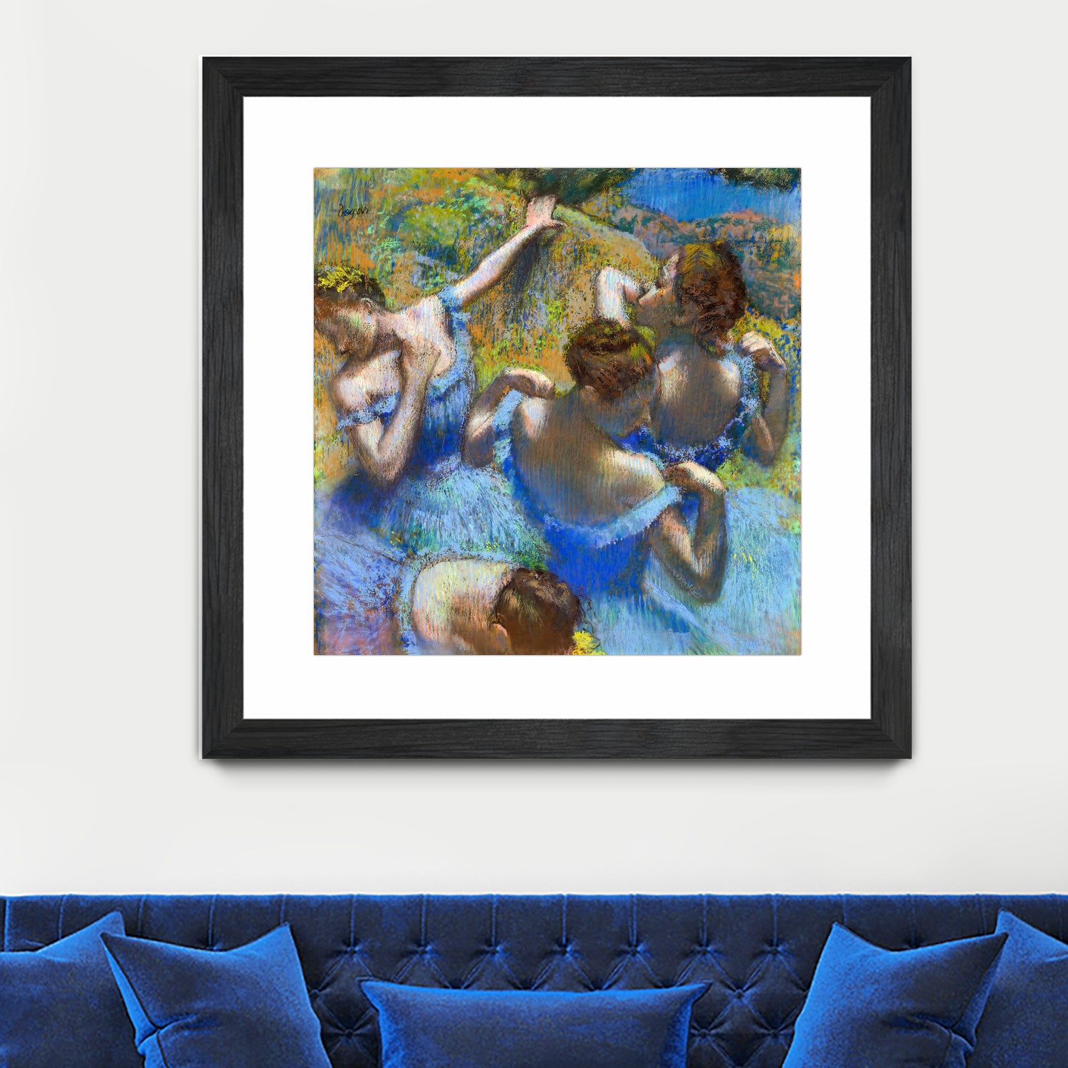 In Blue Dancers, Edgar Degas captures a fleeting moment of grace and motion, where dancers in vibrant blue tulle seem to dissolve into light and movement. Through layered pastels and dynamic composition, Degas reveals both the discipline and poetry of ballet—his lifelong study of beauty in motion.